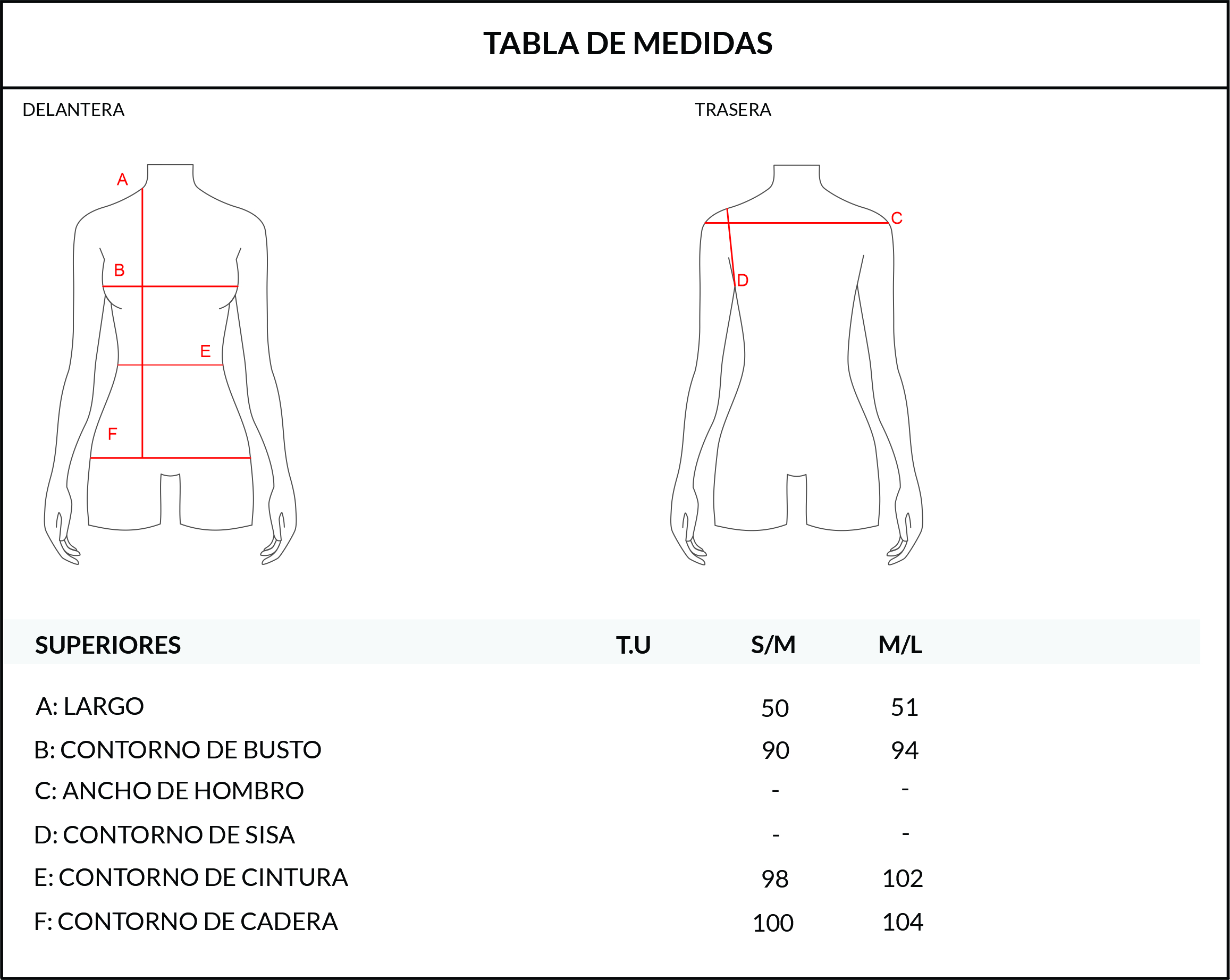 Estatura 175cm / Cintura 60cm / Busto 80cm / Cadera 89cm